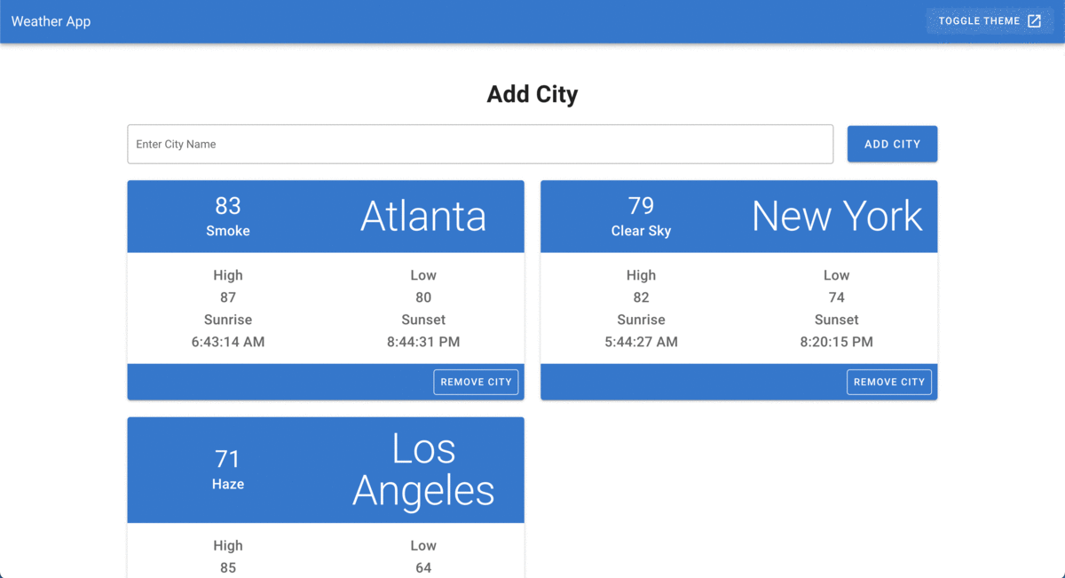 Weather App - Using the OpenWeather API get the weather for any city worldwide.